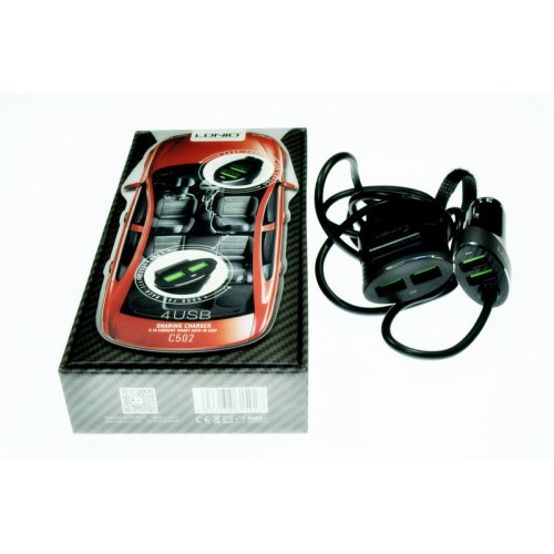 Автомобильное зарядное устройство LDNIO C502 4usb с проводом, максимальный выходной ток 5100mAh, входящее напряжение 12-24V, не подлежит обязательной сертификации, произведено: Changgang Middle Road, Гуанчжоу, Китай