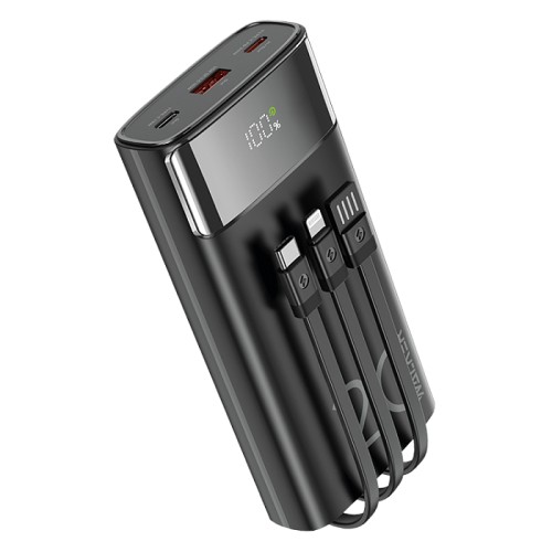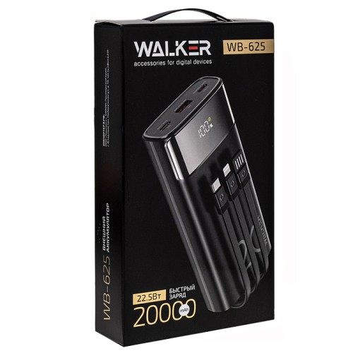 Внешний аккумулятор Power Bank Walker WB-625, 20000 мАч, Li-Pol, 3A, 22.5Вт, QC+PD, с 3 встроенными кабелями, черный