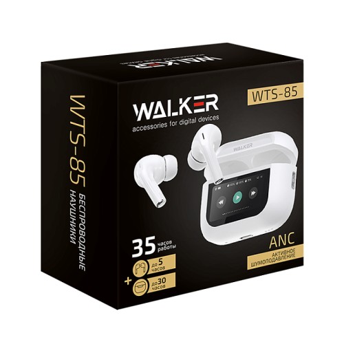 Наушники TWS WALKER WTS-85, шумопод. ANC, эквалайзер, Bluetooth 5.4, сенсорный дисплей, белые
