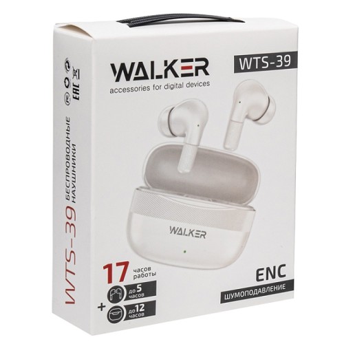 Наушники TWS WALKER WTS-39, шумопод. ENC, независ. работа наушников, белые