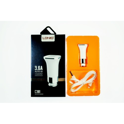 • Автомобильное зарядное устройство LDNIO C301 2usb+кабель Lightning 3600 мАч