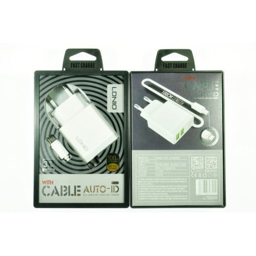Сетевое зарядное устройство USB LDNIO A321 2 USB+кабель микро, входное напряжение 100-240 вольт, входной ток 0,6A, максимальный выходной ток 3,1A, мощность 15,5W, произведено в Китае