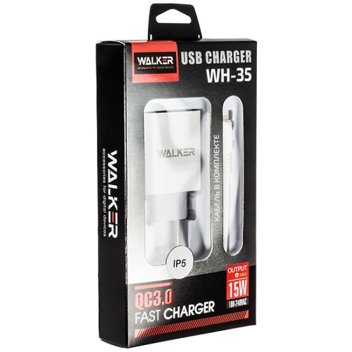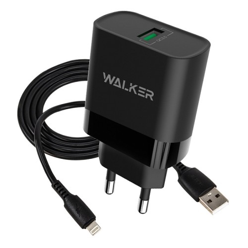 Сетевое зарядное устройство WALKER WH-35, 2.4А, 15Вт, USBx1, быстрая зарядка QC 3.0 + кабель для Lightning