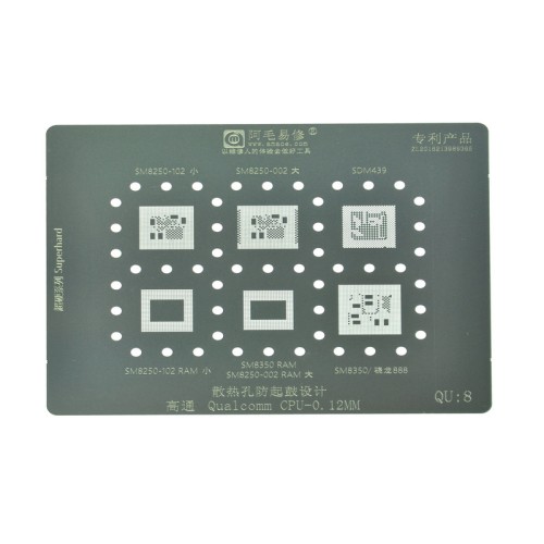 Трафарет BGA IC Amaoe 0,12мм QU-8 CPU SM8250-102/SM8250-002/SDM439/SM8250-102 RAM/SM8250-002 RAM/SM8350 RAM/SM8350/888