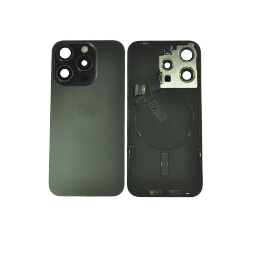 Задняя крышка для iPhone 15 Pro черный Titanium со стеклами камеры+шлейф на беспроводную зарядку, вспышку, микрофон ориг