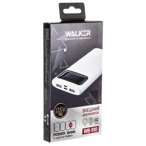 Внешний аккумулятор Power Bank Walker WB-910, 22,5Вт, 10000 мАч, Li-Pol, 3A вх/вых, быстрая зарядка PD, диспл, белое