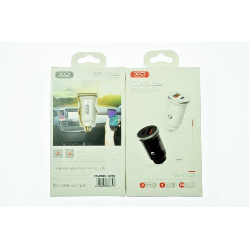 Автомобильное зарядное устройство XO-CC25, 3А, 30Вт, USBx1/Type-Cx1, быстрая зарядка QC 3.0+PD, белое