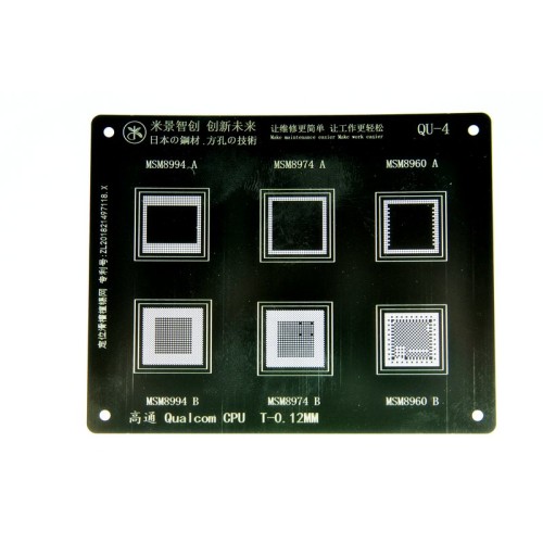 Трафарет BGA IC Mijing T-0,12мм QU-4 Qualcom CPU MSM8994A/MSM8994B/MSM8974A/MSM8974B/MSM8960A/MSM8960B