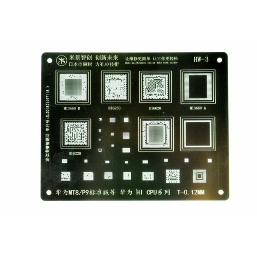 Трафарет BGA IC Mijing T-0,12мм HW-3 P9/Mate8 Hi3660A/Hi3660B/Hi6250/Hi6220/Hi6220/ CPU